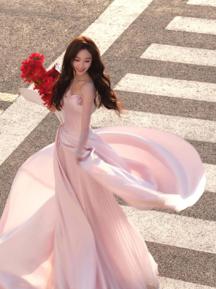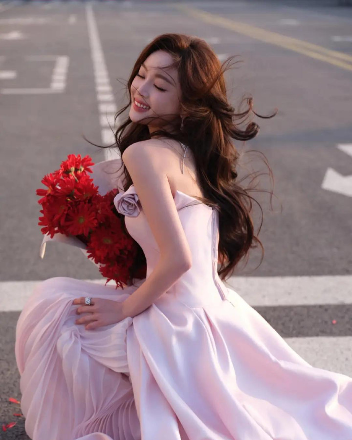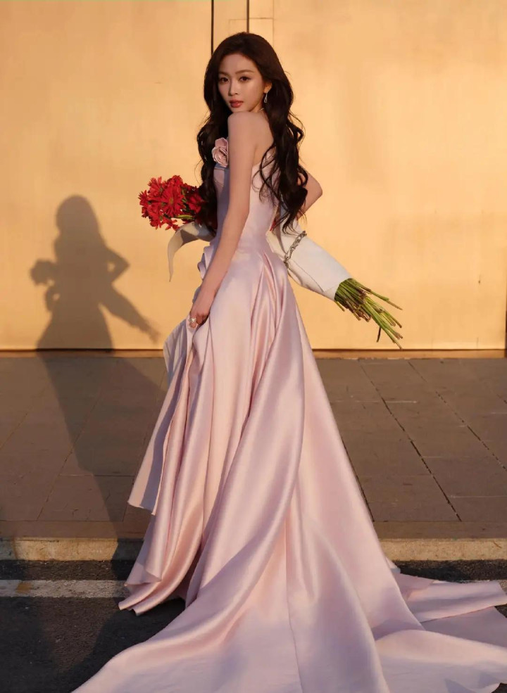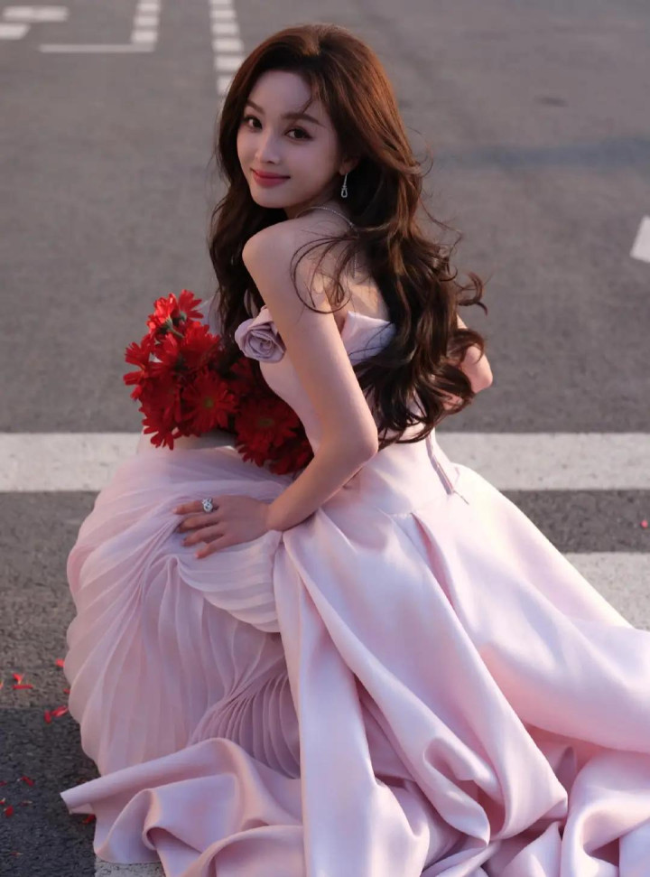 吴宣仪一袭粉裙亮相国剧盛典红毯演绎浪漫氛围感