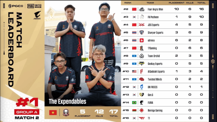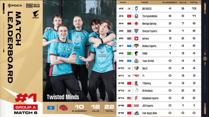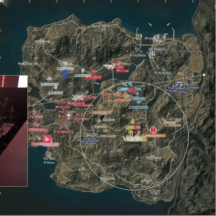 决赛圈,TE先与DNF交战,双方互换多人,TWIS抓住机会前来劝架,DNF先被淘汰,随后SP独狼也被蓝圈带走,最终TE与TWIS决赛圈大战,TE连续击倒TWIS两人,TE拿回人数优势,TE开车转移但被TWIS打掉,双方来到二打二,TWIS率先发现TE一人并击倒,TanVuu一打二不敌TWIS两人,TWIS成功吃鸡。
