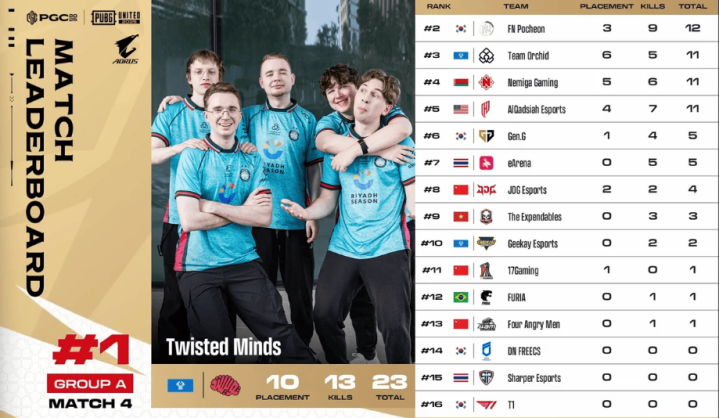 虎扑11月28日讯PGC2025A组小组赛第一日比赛结束,本日赛况如下: