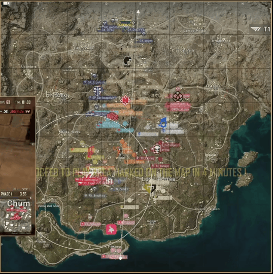 阶段6,圈型刷在机场西北部山地,TE圈边将SP淘汰出局,同时DNF也将EA团灭。