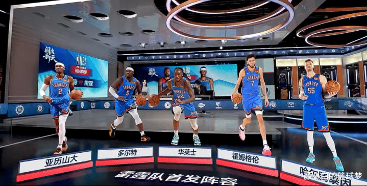此役雷霆真的用了究极五大,平均身高2.09米的超级先发,杜兰特职业生涯首次打到得分后卫的位置,要知道杜兰特在篮网、太阳时期他是顶到四号位的,但开场雷霆的策略不让KD接球,杜兰特反击暴扣拿到首分。
