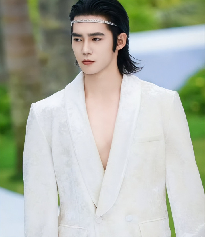 一身深V剪裁的纯白真空西装,让他扎实胸肌若隐若现,透出一种野性的性感,还不会显得过分夸张,这种状态其实刚刚好。
