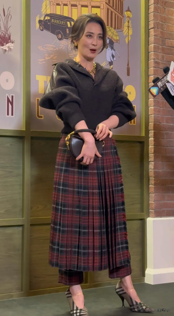 近期,蒋勤勤现身北京王府井巴宝莉新店开幕仪式,她身着黑色针织衫搭配品牌经典格纹半裙,佩戴简约金色饰品,整体造型优雅大方,活动现场,她始终保持从容微笑,与来宾自然交流,展现出成熟女性的独特魅力。