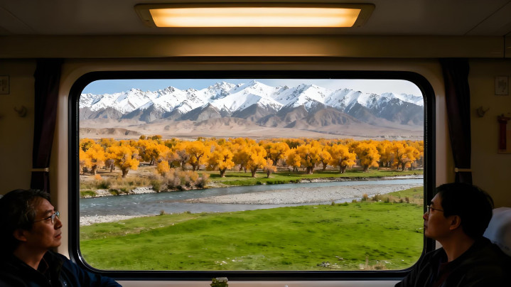 往南走到南疆,库车的龟兹文化、阿克苏的胡杨林、喀什的古城,一个比一个精彩。火车在沙漠里跑的时候,乘务员会端来甜甜的哈密瓜,还会给你讲铁路建设的故事。最让人难忘的是在卡拉库里湖,慕士塔格峰和公格尔峰倒映在湖水里,牧民骑着马赶着羊从旁边经过,简直美成一幅画。坐这趟专列特别省心,不用换来换去,行李放在车上就行,下车玩的时候轻装上阵,晚上躺在卧铺上,听着火车 “哐当哐当” 的声音入睡,第二天醒来又是新的风景。