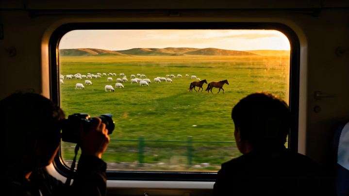 火车刚开出河西走廊,祁连山的大雪山就出现在眼前,融化的雪水滋养着戈壁里的绿洲,到处都是吃草的牛羊。到了新疆哈密,画风一下子就变了 —— 火焰山红得发烫,葡萄沟里全是绿油油的葡萄藤,一会儿能吹到戈壁的热风,一会儿又能闻到瓜果的香甜味。