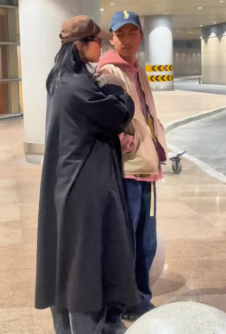 儿子元宝身穿粉色卫衣和卡其色背心外套,搭配蓝色长裤,打扮很显活力。他戴着蓝色帽子,还扎着一个低马尾,发型很有个性,今年17岁的他长得很高大,比171的白百何还要高出很多,估计应该有180左右了。